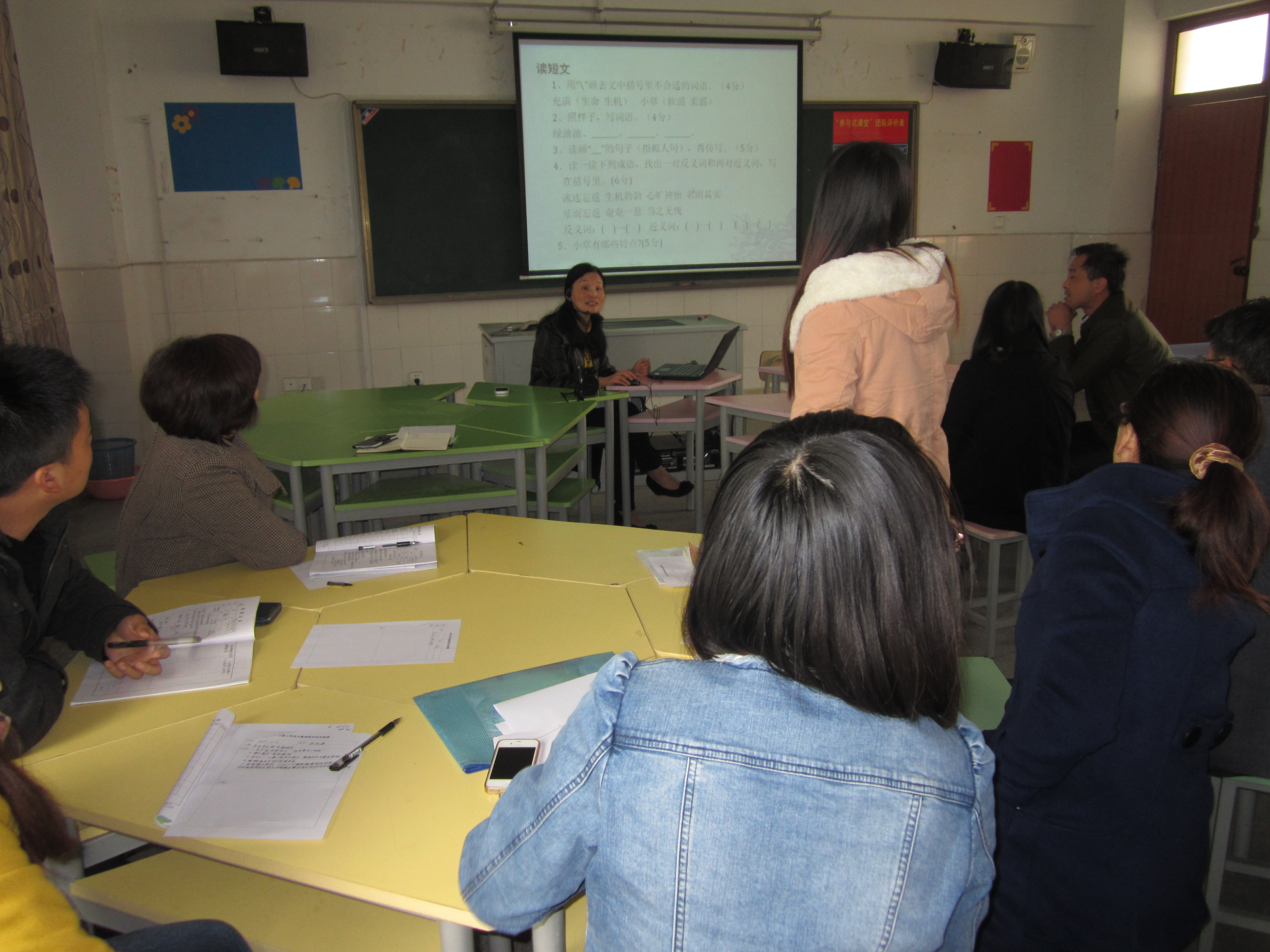 讲座结束后,周老师与老师们就教学中遇到的困扰展开了交流互动。她要求老师们转变评价理念,将评价与教学相结合,通过学业评价促进教学质量的提高与学生的全面发展。