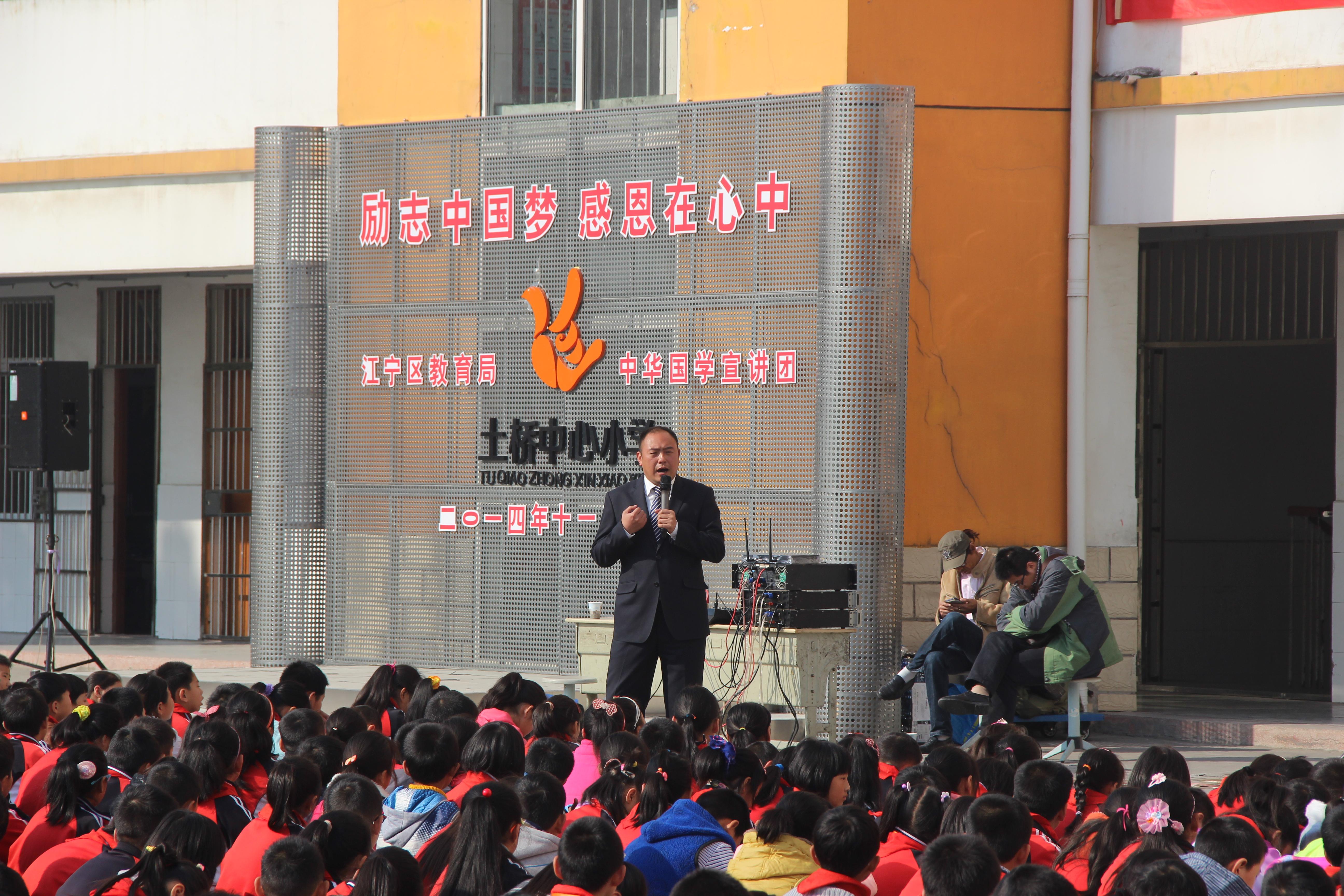 11月14日上午,在土桥小学近2000名师生、家长的满怀期待中,中华国学宣讲团的白俊龙老师如约而至。伴随着秋日温暖的阳光,“励志中国梦?感恩在心中” 大型公益报告会拉开序幕。