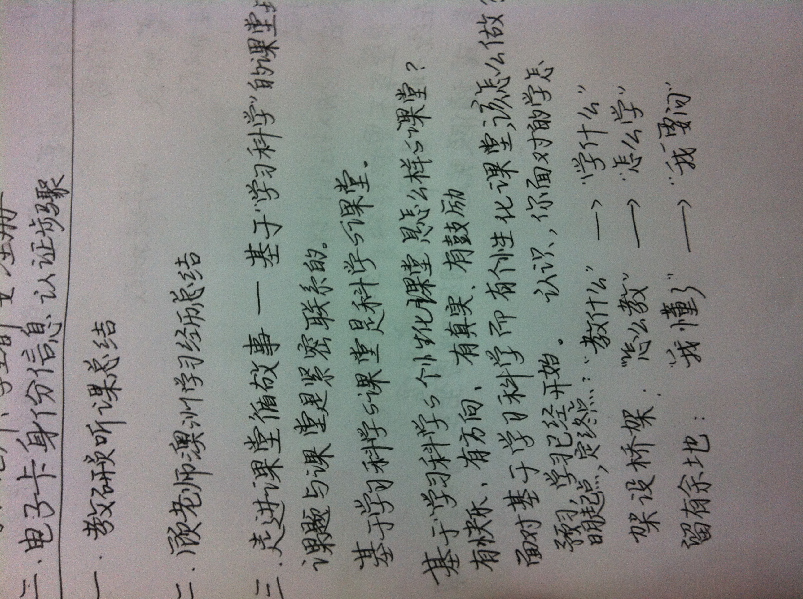薛惠老师认为课堂是师生知识成长的天地,课题是教育教学中的问题,我们作课题研究的主要色彩一定离不开对课堂的探究。她给我们介绍了基于学习科学的课堂的提出及内涵,强调了个性化课堂要“有快乐”、“有真实”、“有发展”、“有鼓励”,并结合了具体的案例进行了解读。最后,薛惠老师就“面对基于“学习科学”的课堂,我们该如何做”提出了自己的见解。薛惠老师简洁的语言,系统的理论给各位老师留下了深刻的印象。