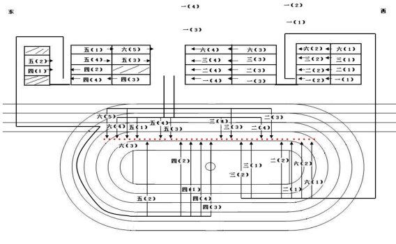 ④大操场中间偏西。负责由教学楼中门入场位于操场西面的二(3)、二(4)、