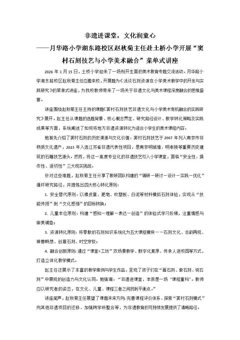 发表日期:2026/1/15 17:20:10 来源:江宁区土桥中心小学 作者:admin 有118位读者读过